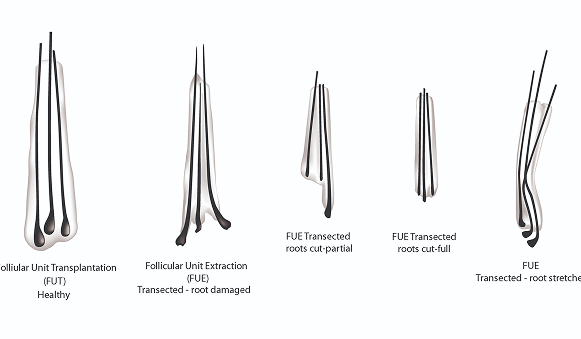 There are hair grafts that are damaged during harvesting that don’t take to the scalp. Follicular unit extraction (FUE) hair transplants harvest grafts individually, most often using a punch extractor. Hair grafts can be damaged at the root by the sharp punch, or the root stretched when harvesting. Damage to hair grafts, which can be as high as 30% in FUE surgery, means that they don’t take to the scalp, and grow to its full length.